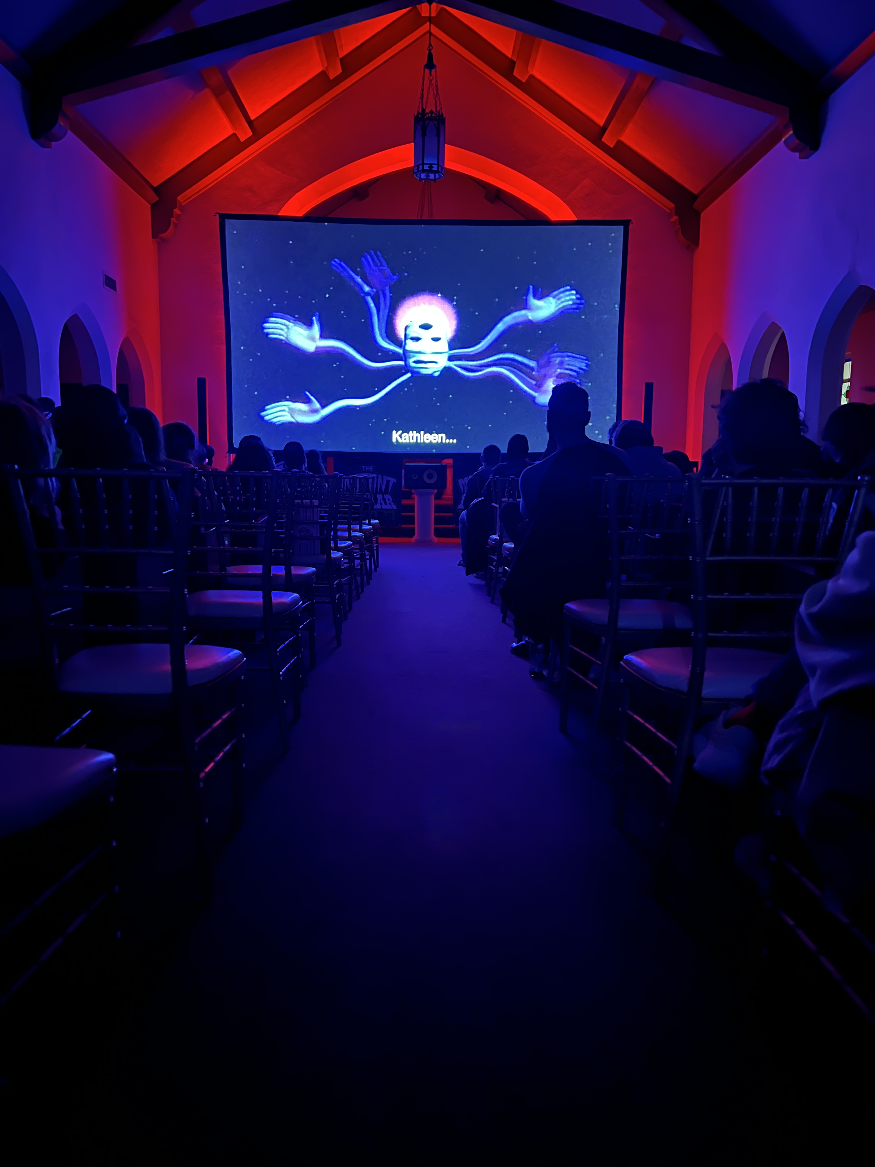 At 7PM, the VINTAGE VIDEO PRESHOW starts in the chapel. There you’ll see a collection of trailers, shorts, and blasts from the past. It’s all connected to the theme of THE SECRET MOVIE. Then at 8PM The Movie Mutant introduces a handpicked obscure movie that guarantees to deliver a truly memorable audience experience. The GENRE CHANGES EVERY MONTH!