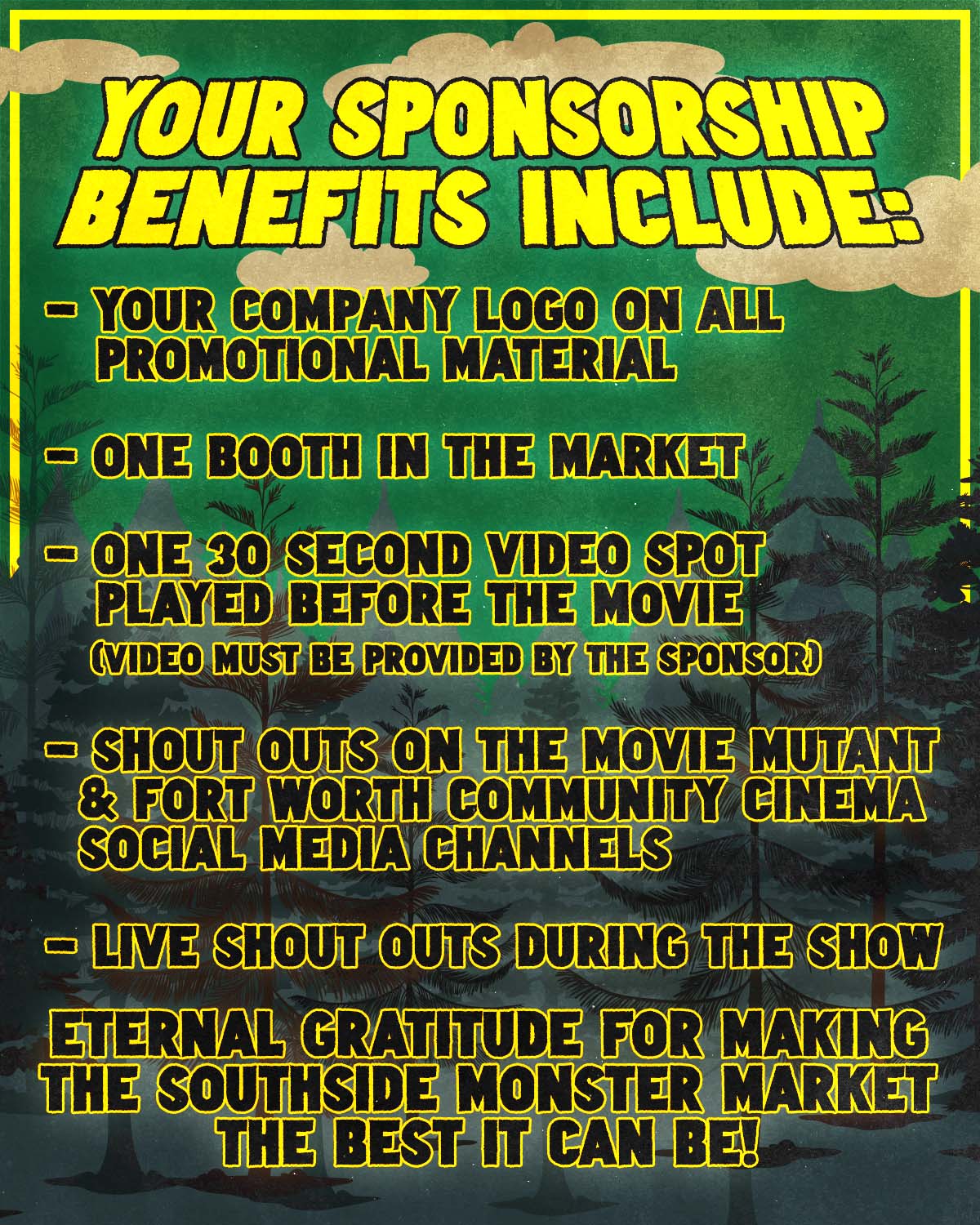 Your $150 sponsorship of The Southside Monster Market includes:
