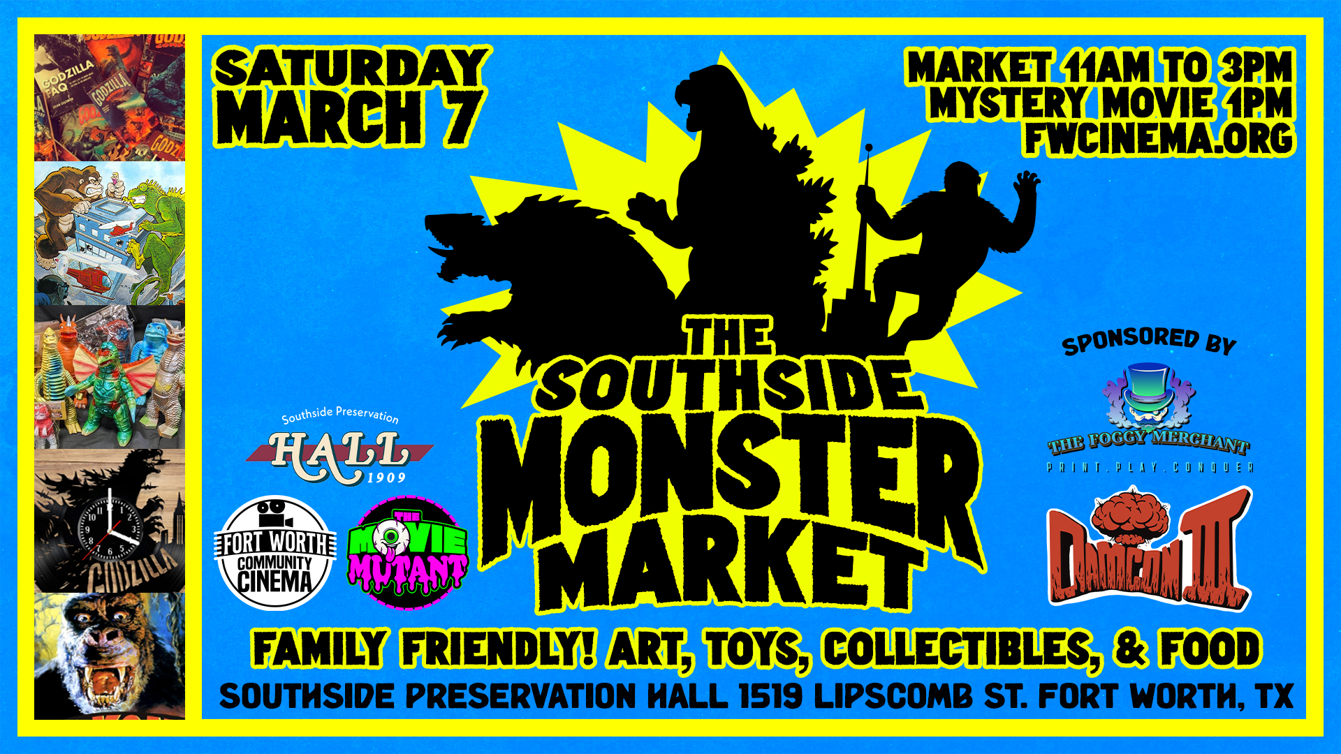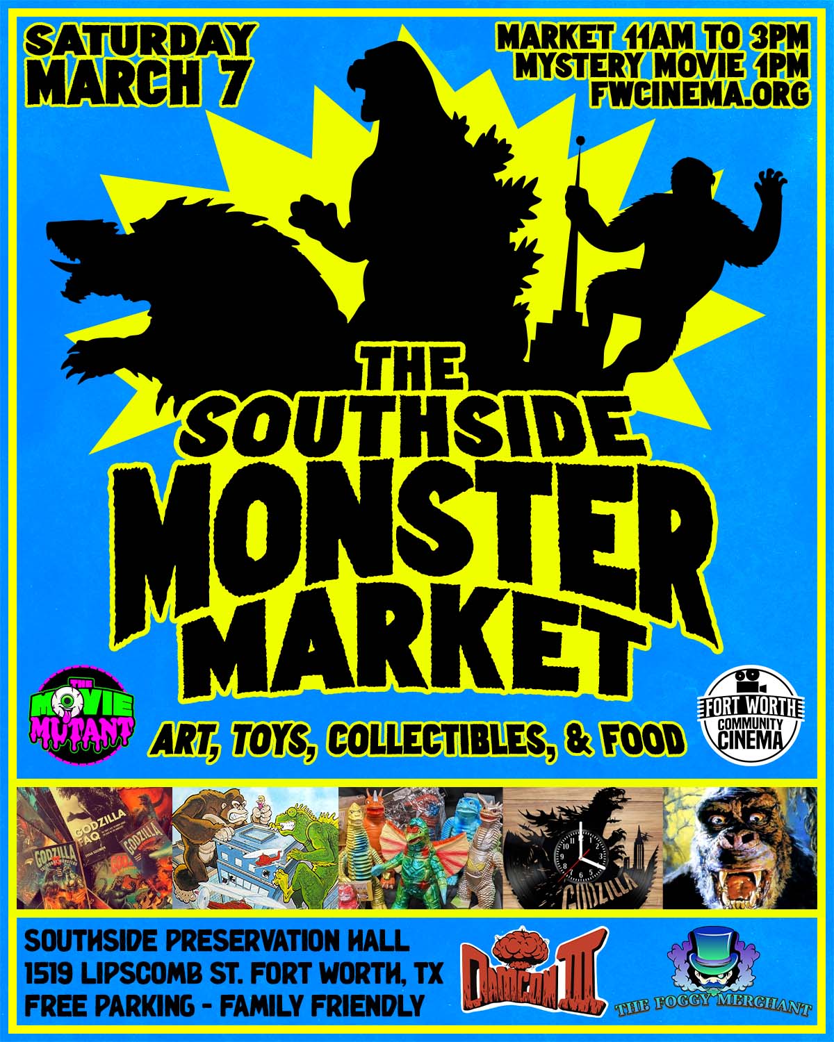 Art, toys, collectibles, food, and more! Come browse over 40 booths featuring your favorite movie monsters and retro goodies.