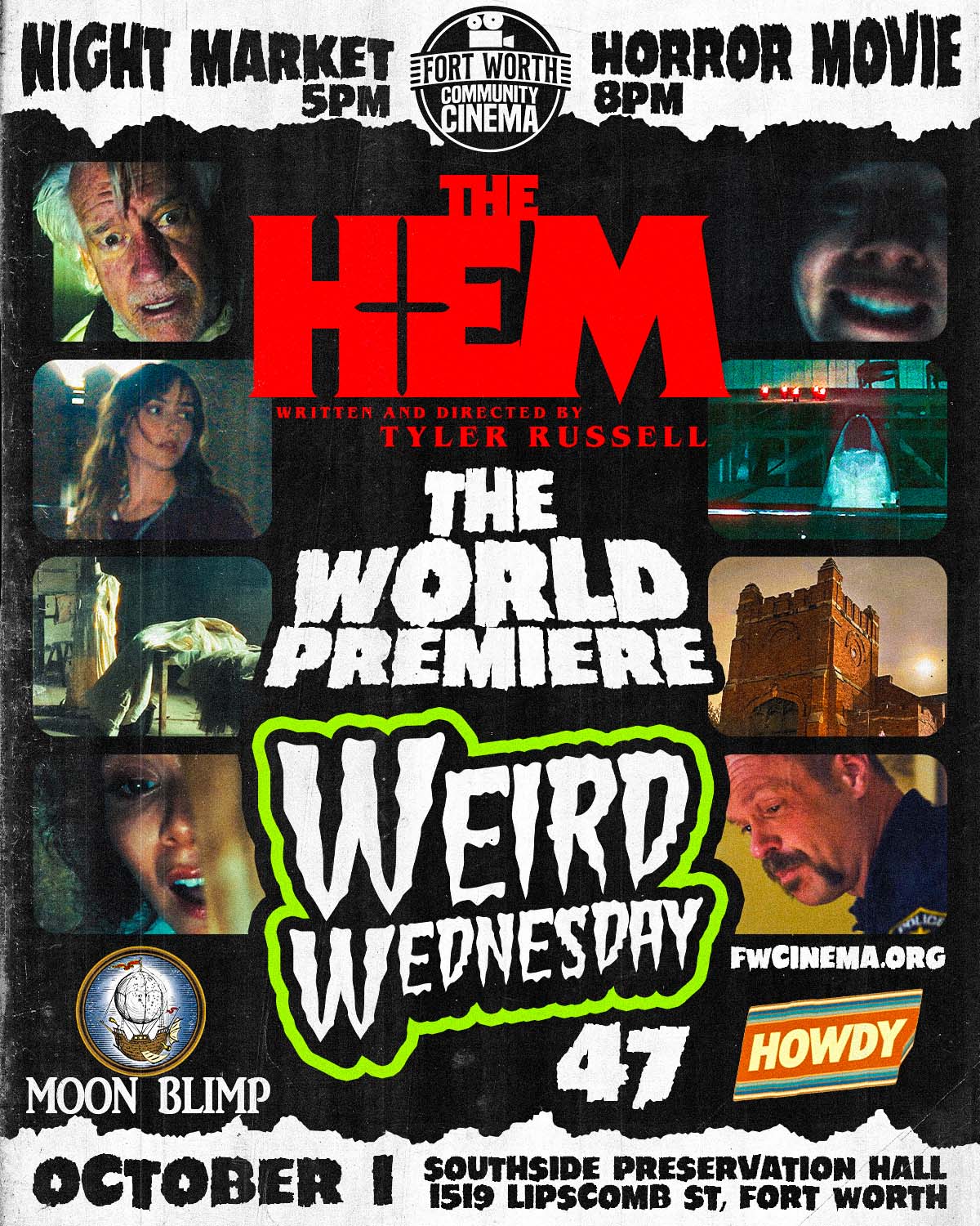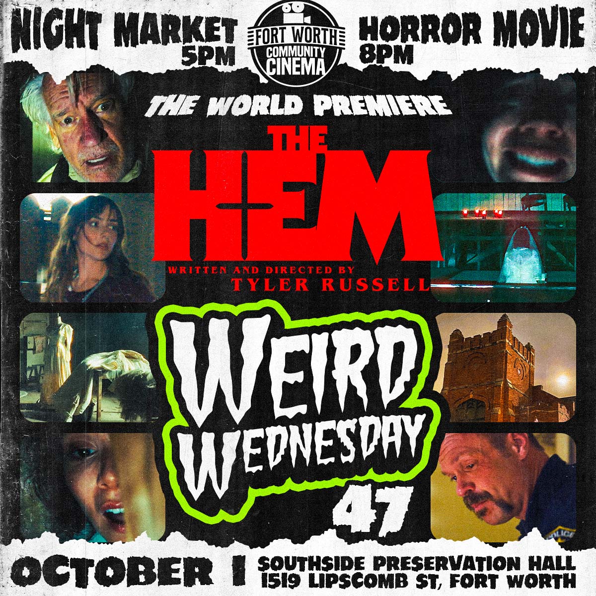 WORLD PREMIERE of THE HEM. This horror movie was shot right here at Southside Preservation Hall! Cast and crew will be in attendance. Runtime is 80 minutes.