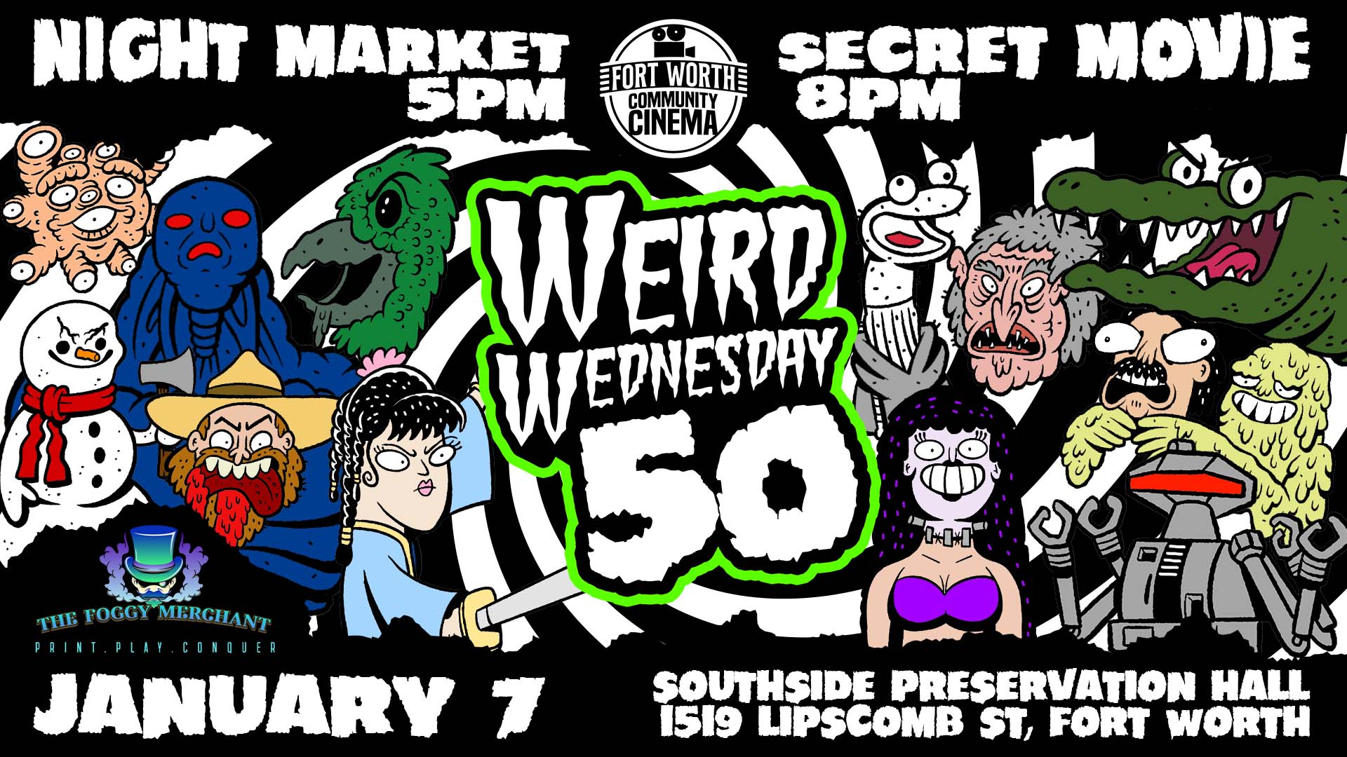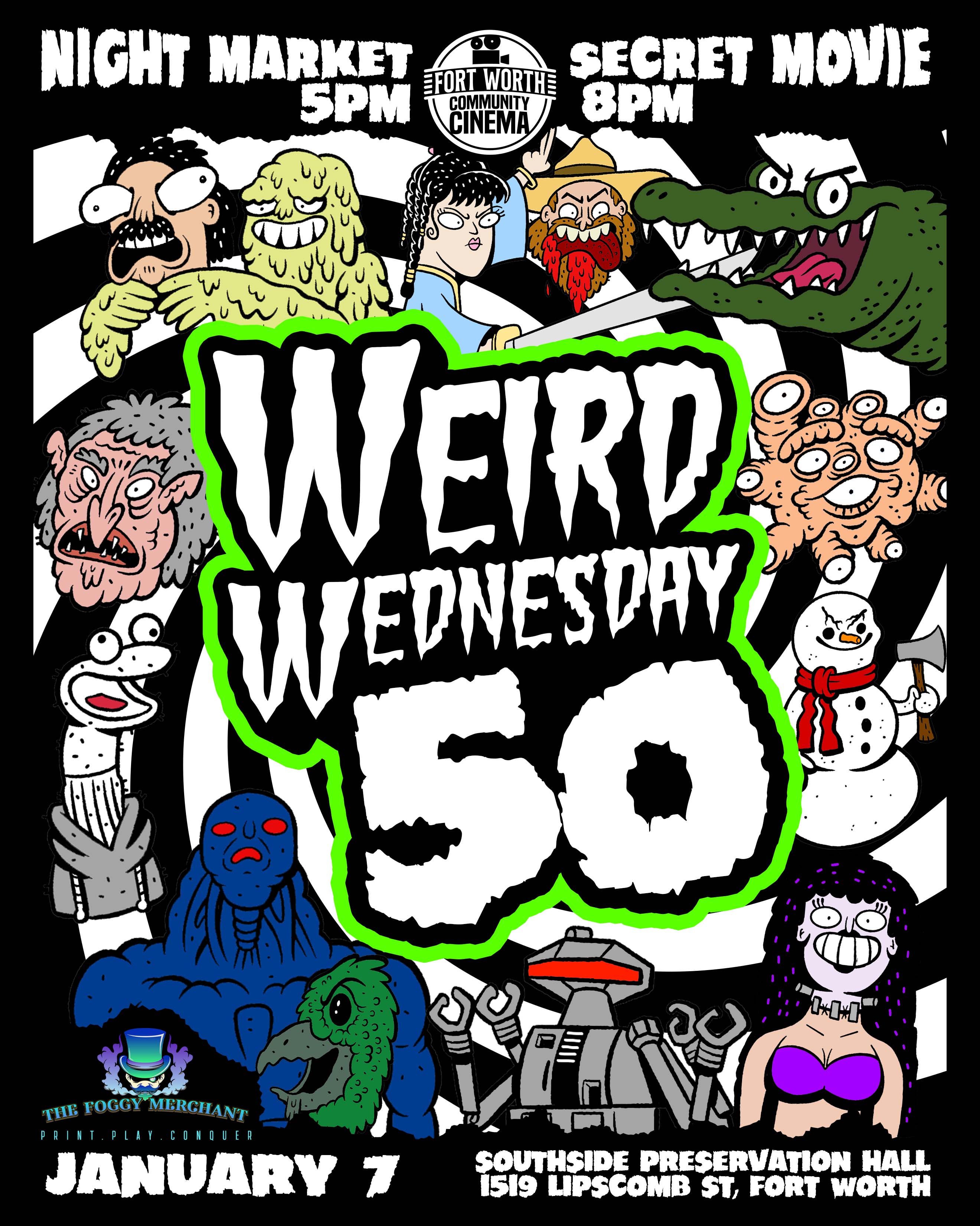 Weird Wednesday is Fort Worth’s longest running Night Market and Movie Screening series! Once a month, The Movie Mutant takes over Southside Preservation Hall for a night of movies, art, collectors, and more. There’s free parking, food on-site, and it’s BYOB.